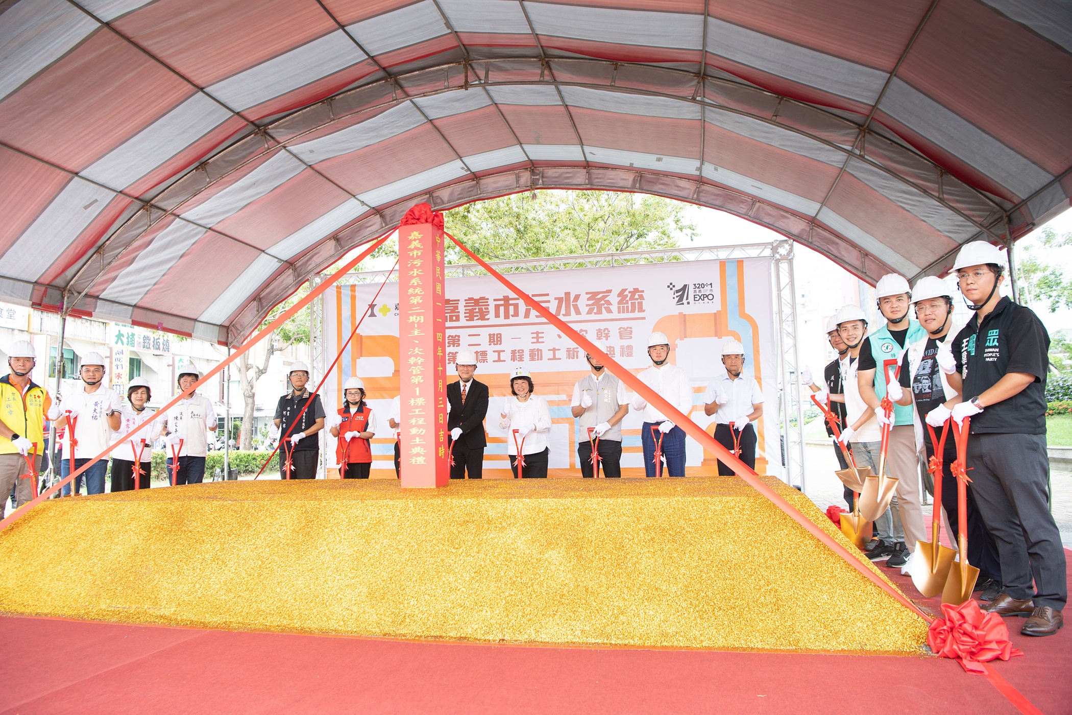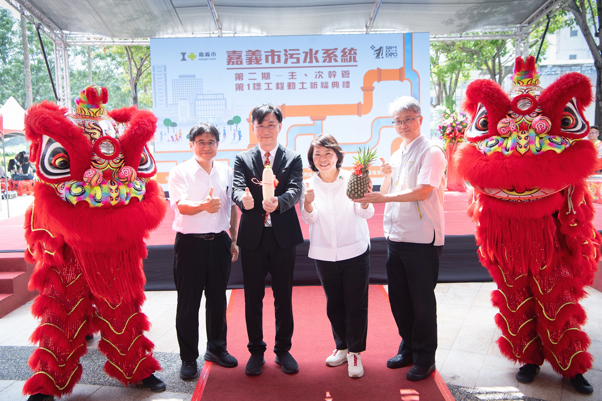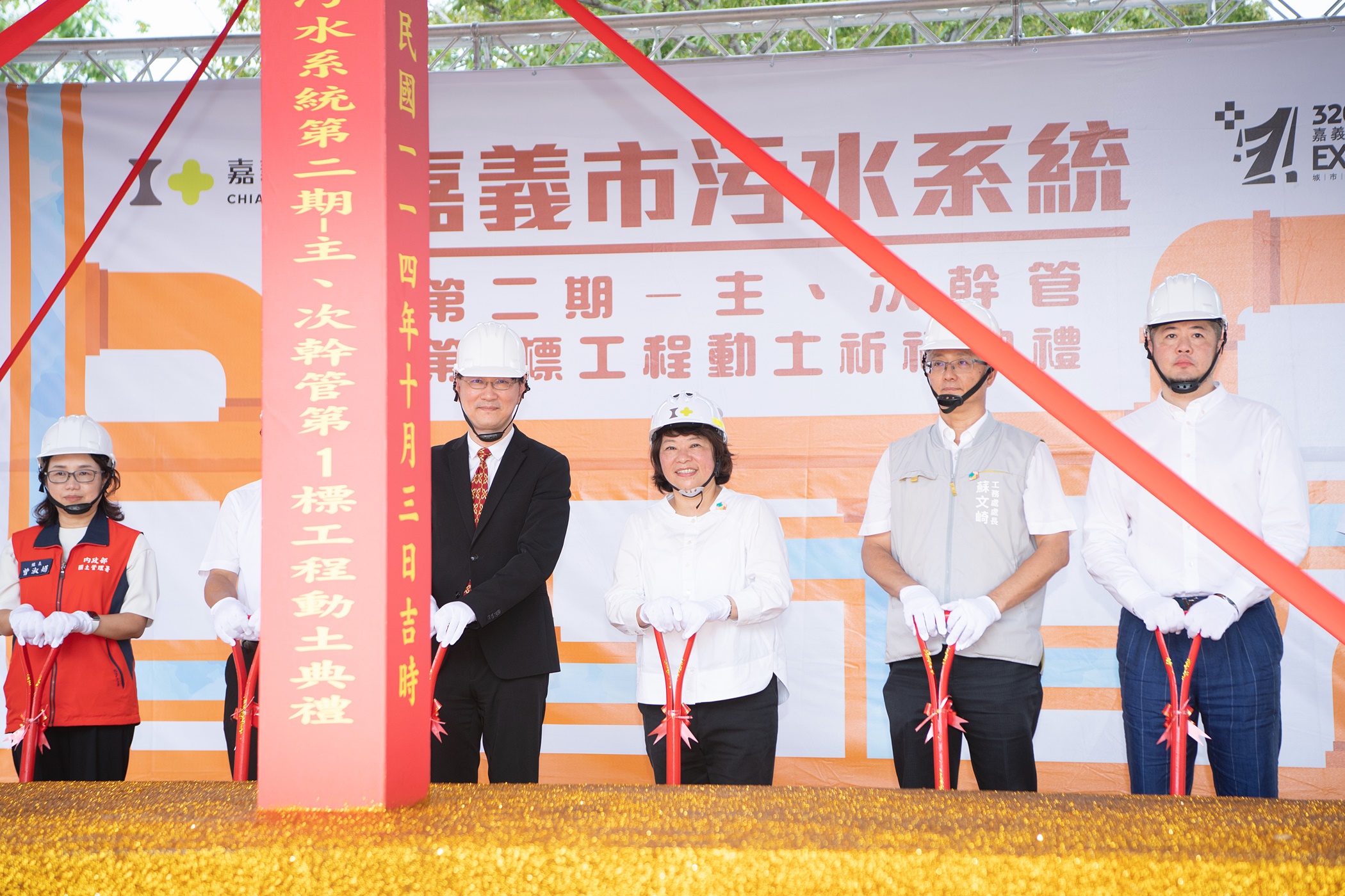 嘉義市政府始終秉持「以民為本、永續發展」的理念,致力於提升市民生活品質,積極推動污水下水道系統建設。嘉義市政府今(3)日於文化公園辦理「嘉義市污水系統第二期-主、次幹管第1標工程」動土祈福典禮,黃敏惠市長與內政部政務次長董建宏、國土管理署署長吳欣修以及多位議員貴賓一同出席,祈求動土平安、順利完工。