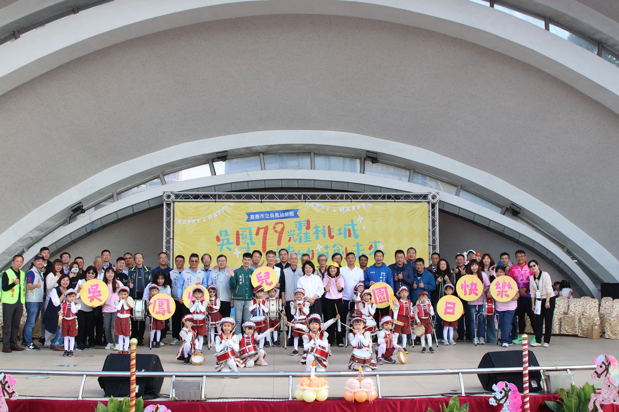 黃敏惠市長指出,嘉義市府團隊始終秉持「人文第一、科技相佐、精緻創新、國際視野」的理念推動教育創新,並以吳鳳幼兒園發展的鼓樂教學為例,該鼓樂團隊為嘉義市首創、由幼兒園孩子組成,讓孩子在團體生活中學習合作與自信,進而在未來展現自我、實現自我。最後,黃敏惠市長感謝歷任園長、老師及家長會長期以來的投入與陪伴,並帶領孩子們及來賓一同高喊「吳鳳幼兒園79週年生日快樂」,在孩子們齊聲祝福與歡笑聲中,一同向吳鳳幼兒園獻上祝賀。