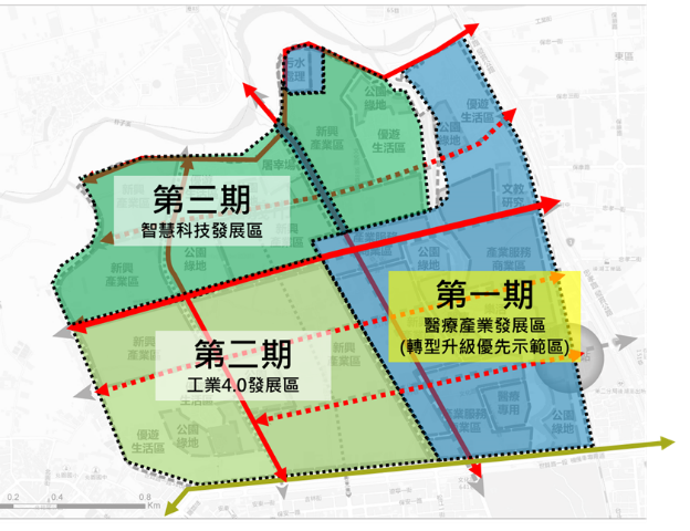 為此嘉義市政府於109年著手評估該區發展方向及定位,透過大眾運輸導向發展(TOD)之概念,評估現況低度使用之農業區透過區段徵收方式開發,將車站周邊地區轉型為中高強度的發展可行性,並以分期分區方式辦理,包含第一期「醫療產業發展區」、第二期「工業4.0發展區」及第三期「智慧科技發展區」。