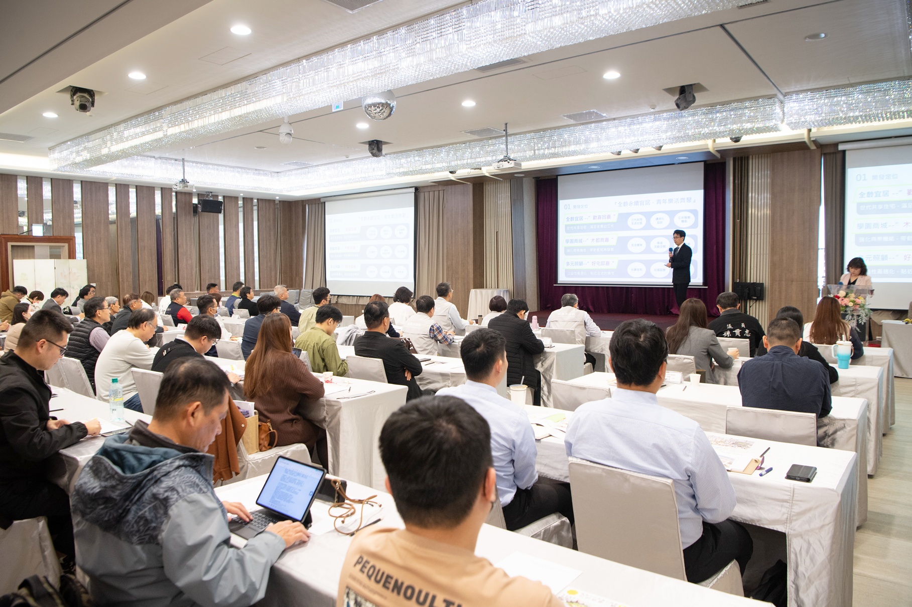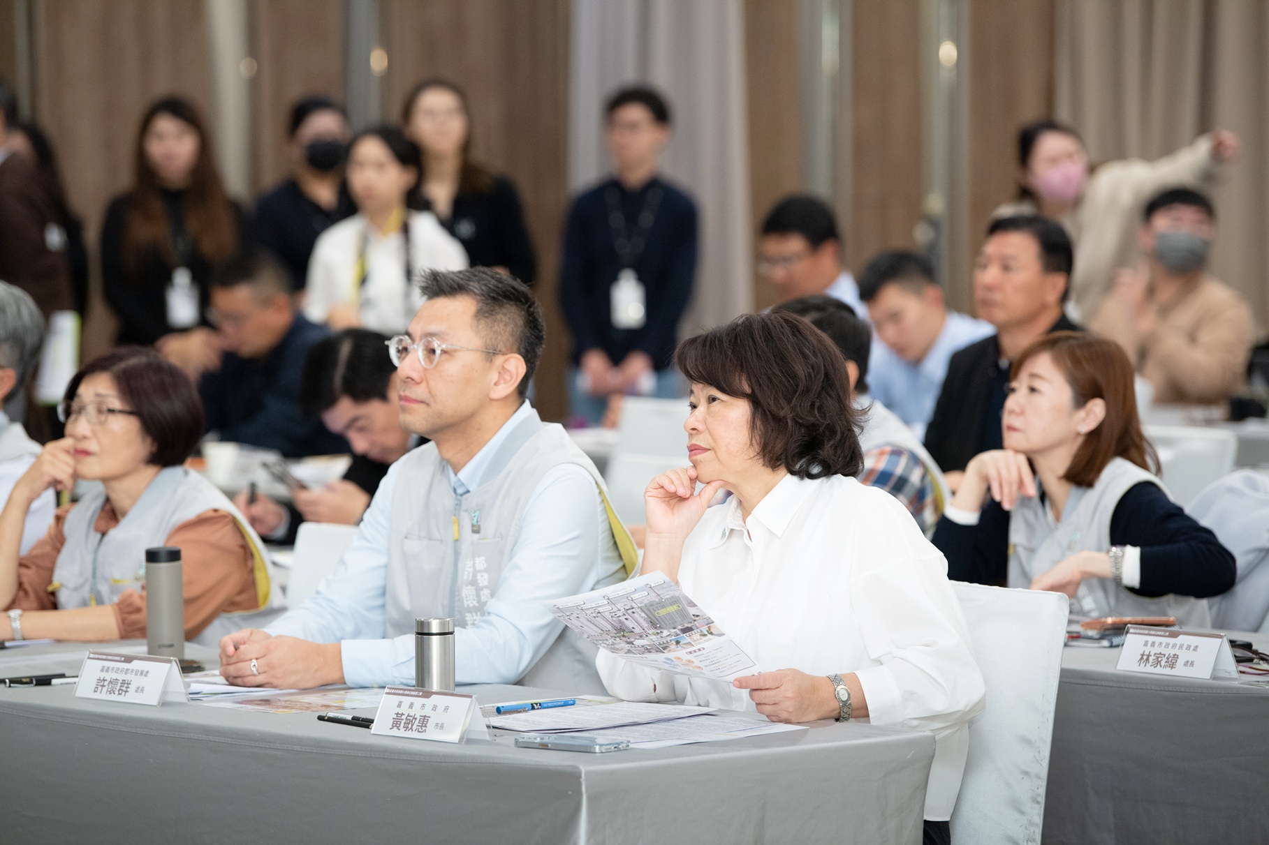 嘉義市政府積極推動「民族國小西側二期公辦都市更新招商案」,為向各界說明招商條件及開發願景,分別於嘉義市鈺通大飯店及臺北市寒舍艾美酒店舉辦招商說明會,今(19)日於嘉義市鈺通大飯店舉辦,為「民族國小西側二期公辦都更」招商案揭開序幕,黃敏惠市長到場歡迎各界踴躍參與投資,現場除中央單位、各公有土地管理機關代表外,亦吸引眾多建設公司、不動產開發公會、保險業及資產管理公司踴躍參與,現場互動熱絡,圓滿成功。