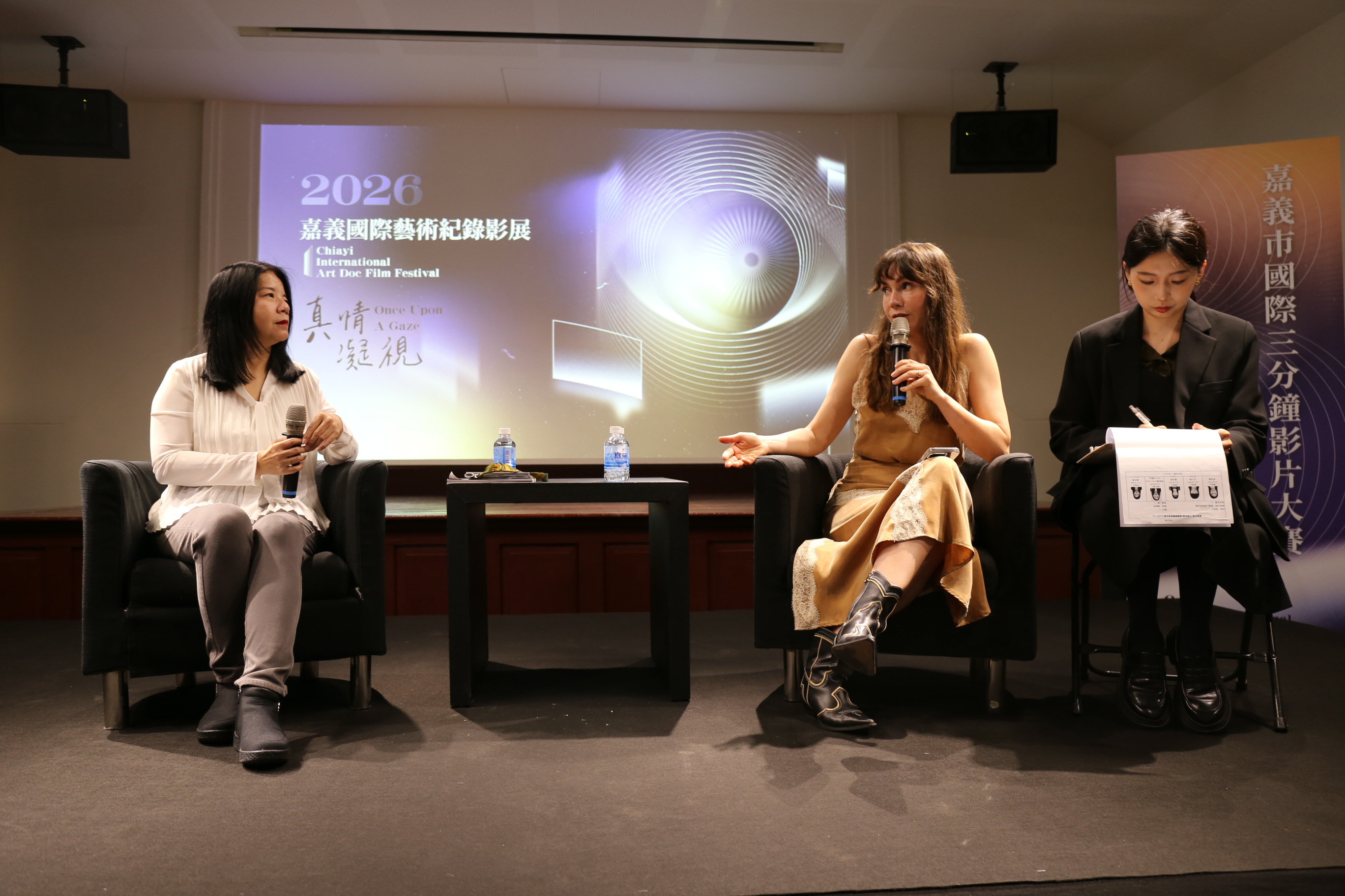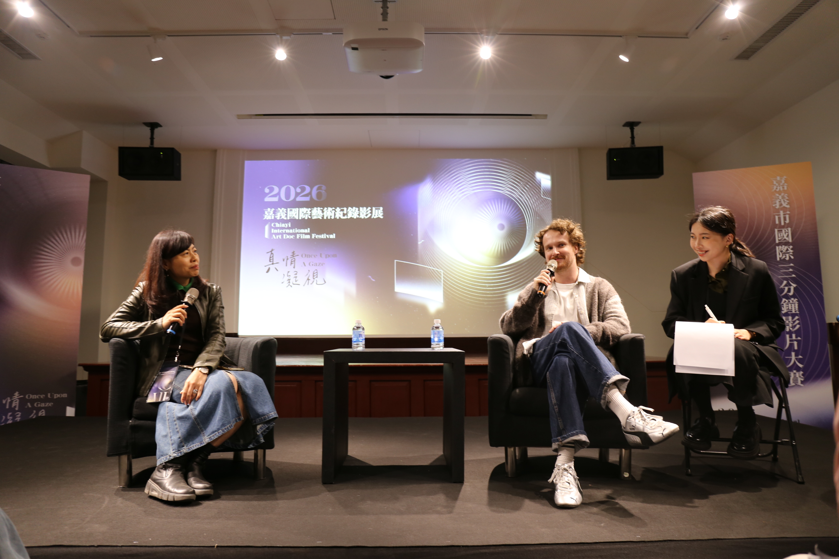影展首日的壓軸活動之一「嘉義市國際三分鐘影片大賽」特映映後座談,邀請到印度評審 Yuki、金獎得主法國導演索菲安·舒艾卜(Sofiane Chouaib)及銅獎得主薩哈共和國導演謝苗·阿瑪納托夫(Semyon Amanatov)。評審 Yuki 表示,其評選標準在於「由裡到外的仔細體悟」,特別是對伊朗作品在戰爭背景下所展現的震撼力印象深刻。金獎得主索菲安 則將巴黎的快慢節奏與光影變換帶到嘉義,試圖在影片中營造「時間暫停」的神祕感。銅獎得主謝苗 分享了薩哈共和國的日常風景,如馬匹、牧人與老鷹,並透露正積極記錄長片,希望能搶在全球暖化改變地貌前,將家鄉最真實的樣貌留給世界。