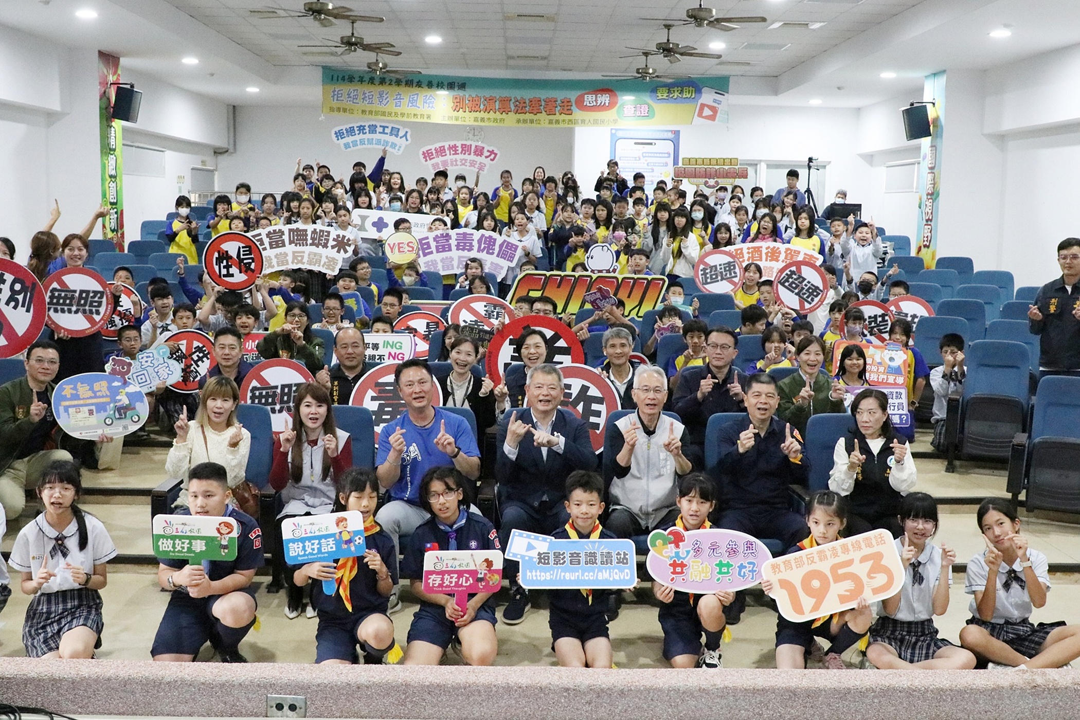 為強化學生數位素養與網路安全意識,嘉義市政府偕同育人國小師生舉辦友善校園週,以「拒絕短影音風險:別被演算法牽著走,思辨、查證、要求助!」為主題,透過情境劇以及猜燈謎遊戲,教導學生網路媒體識讀、識詐、反霸凌的訣竅。嘉義市副市長林瑞彥今(3)日代表黃敏惠市長出席,並簽署「友善校園行動」承諾書,宣示以「拒絕短影音風險」和「防詐騙」等方式營造友善校園風氣。