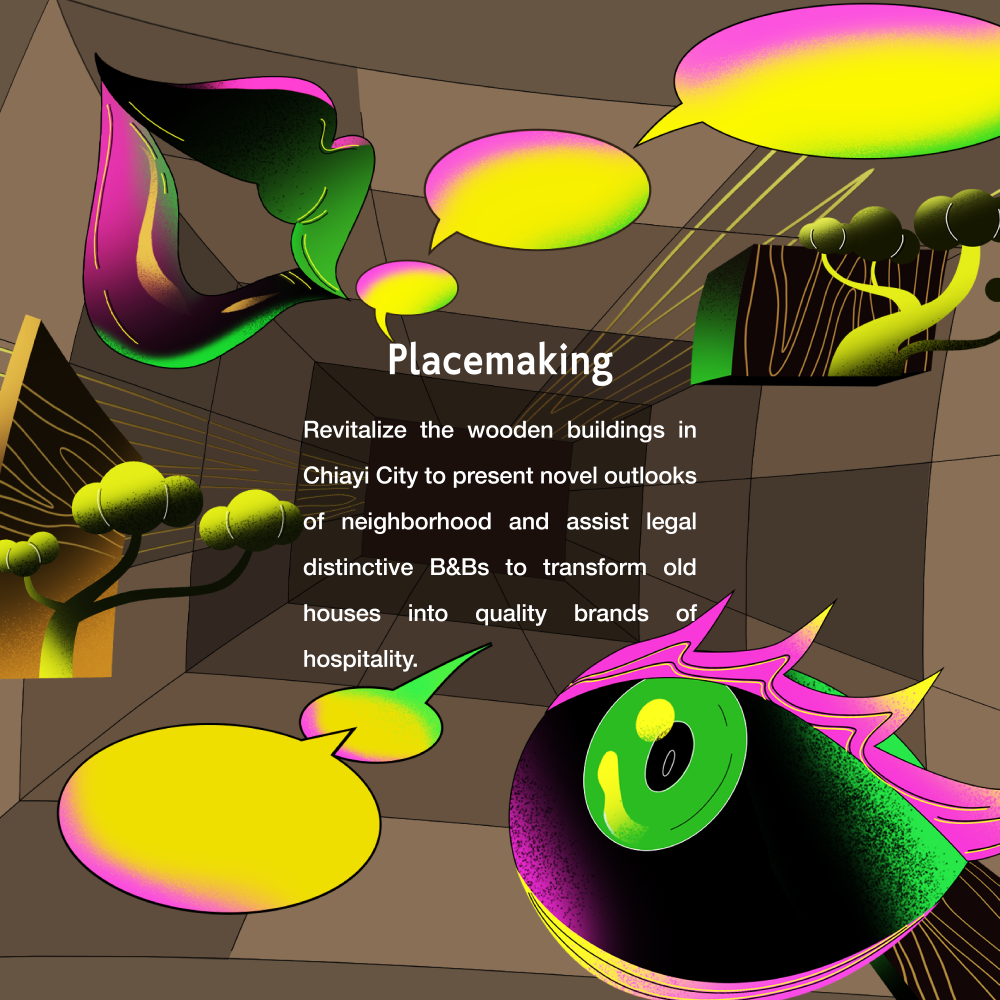 Consultancy for business starting: Setting up Chiayi Creative Hub that offers consultancy on industries, management, employment matching, skill training and integration of strategies.